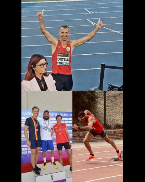 Ottima anche la prova di Mario Ortelli (SM45), autore di un tris di medaglie: oro nei 110hs con 15.41, argento nei 400hs con 1:03.39 e argento nel salto in lungo con un balzo da 6.13m.